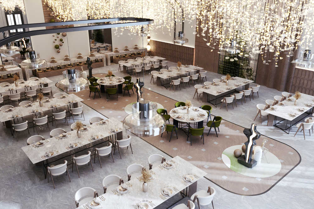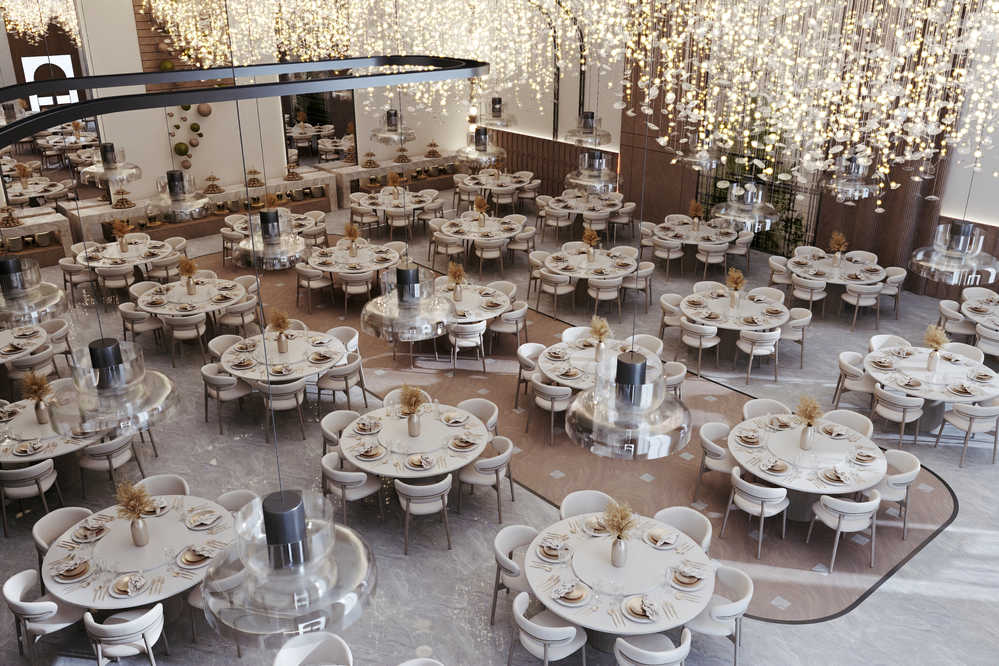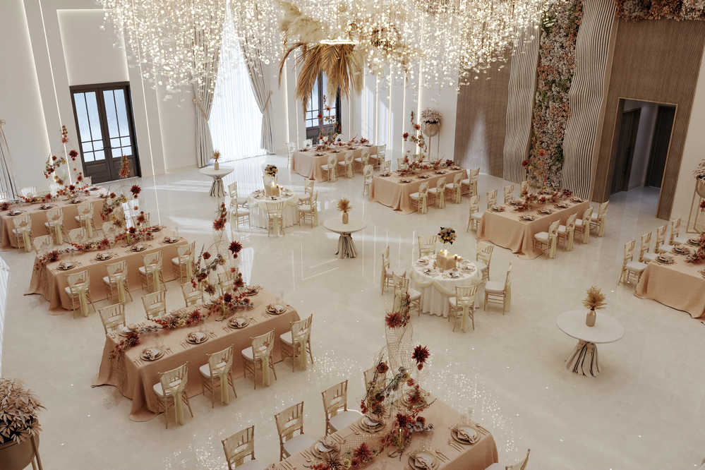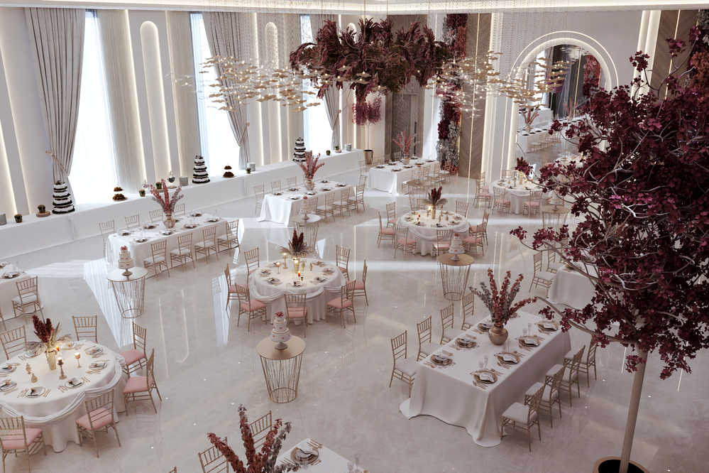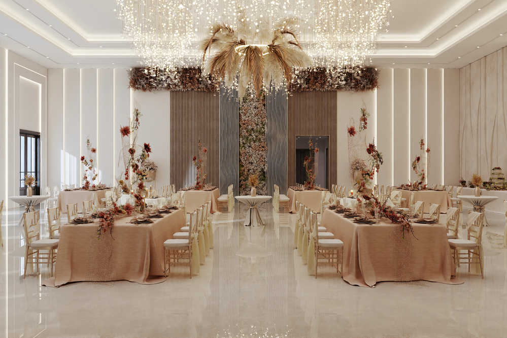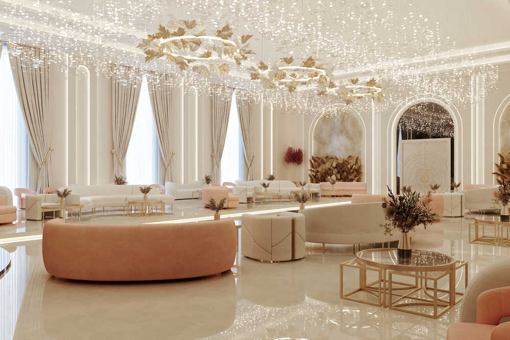 تصميم داخلي راقٍ لقاعة أفراح الدعجم بأسلوب نيوكلاسيك فاخر