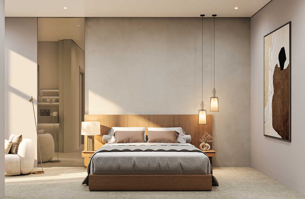 تتميز الفراغات بالاتساع والوضوح، مع توزيع عملي لغرف المعيشة وغرف النوم والمطبخ، بما يعزز الشعور بالراحة وسهولة الاستخدام. الإضاءة المدروسة، سواء الطبيعية أو المخفية، تضيف عمقًا وأناقة للتصميم دون مبالغة.