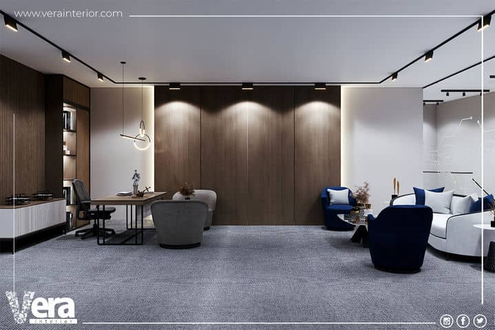 قدمت شركة Vera Interior مشروع تصميم داخلي لمكتب الجرس السعودي عام 2022 بمساحة 800 متر مربع. اعتمد التصميم على الدمج بين العملية واللمسات الجمالية لتوفير بيئة عمل حديثة ومريحة. المساحات الواسعة خصصت للعمل الجماعي، مع مكاتب منظمة وإضاءة عصرية تعزز من أجواء التركيز والإبداع. أما قاعات الاجتماعات فقد صممت لتكون رسمية وملهمة في الوقت نفسه، بينما المكاتب الخاصة تمنح أجواء أكثر هدوءًا وخصوصية. منطقة الاستقبال جاءت بطابع أنيق وترحيبي يعكس هوية الشركة ويترك انطباعًا إيجابيًا لدى الزوار. يعبر هذا المشروع عن خبرة Vera Interior في تصميم مكاتب عملية وراقية، حيث يتم الجمع بين الراحة والجمال لخلق بيئة عمل تدعم الإنتاجية وتعكس صورة احترافية مميزة.