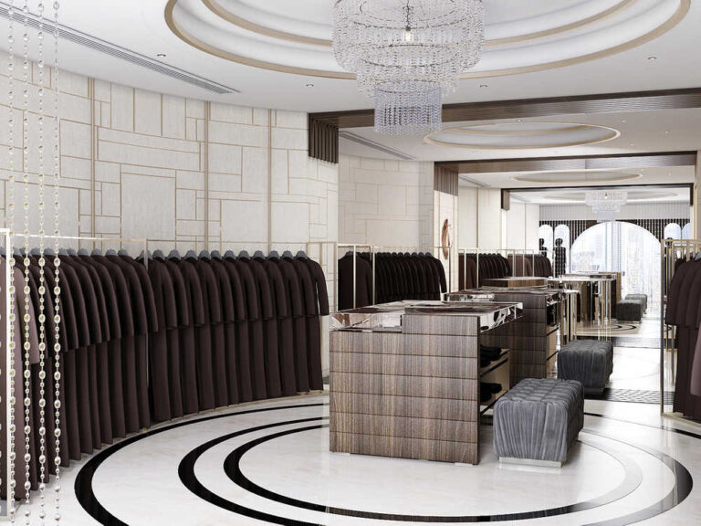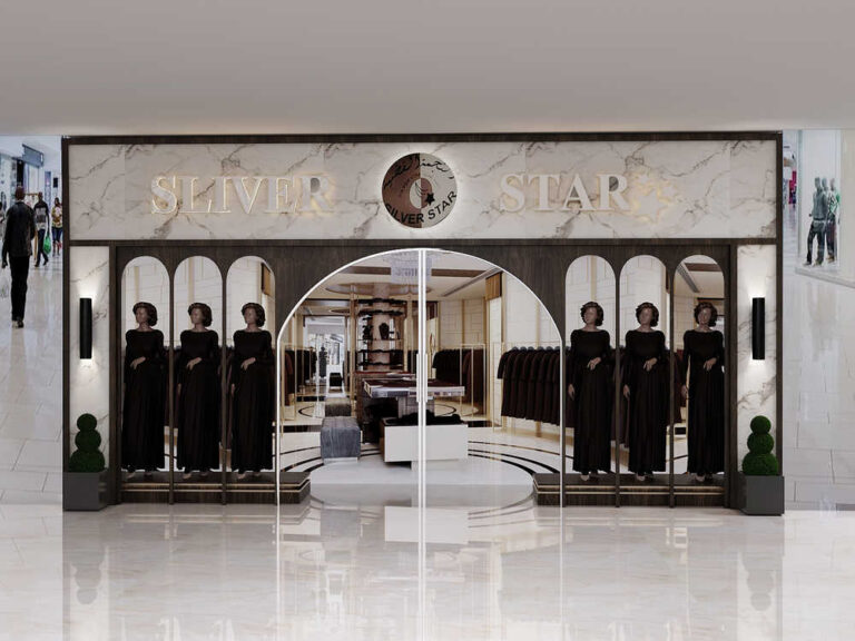 مشروع “النجمة الفضية” هو تصميم داخلي لمحل عبايات نفذته شركة Vera Interior عام 2017 بمساحة 150 م² وتم تصميمه ليجمع بين الأناقة الكلاسيكية واللمسات العصرية في تفاصيل الجدران والإضاءة الدافئة والألوان الهادئة و تم توزيع العناصر بعناية لتحقيق تجربة تسوّق راقية ومريحة تعكس هوية العلامة التجارية كما أضاف الأثاث الفاخر والأسقف المزخرفة والثريات الكريستالية لمسة من الفخامة، مما يجعل المكان يعبر عن ذوق راقٍ واحترافية عالية من فريق Vera Interior في تصميم محلات الملابس.