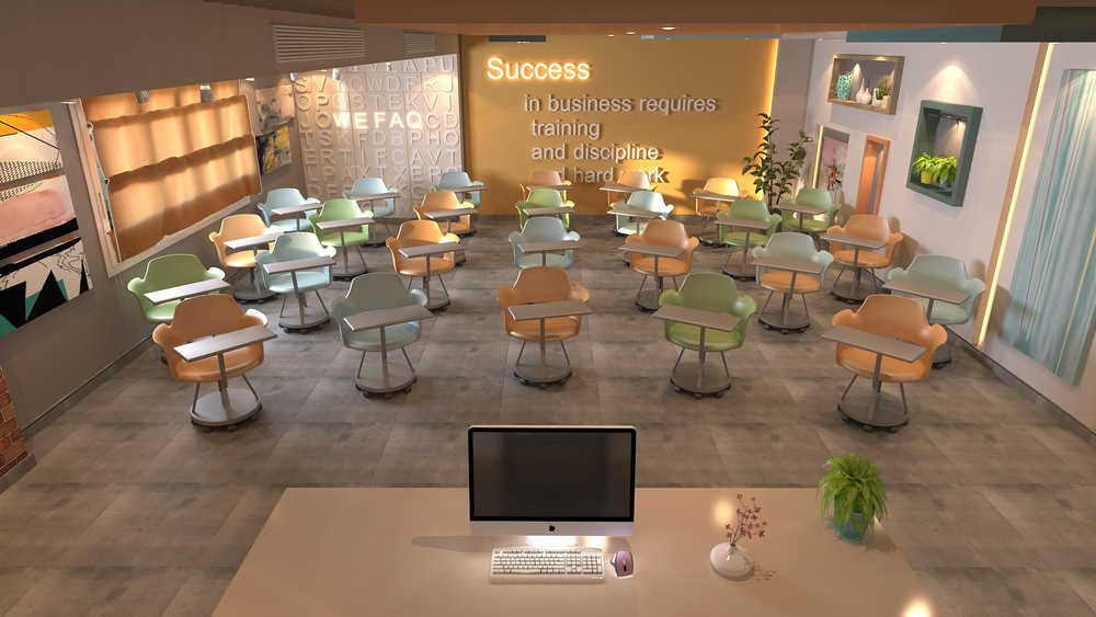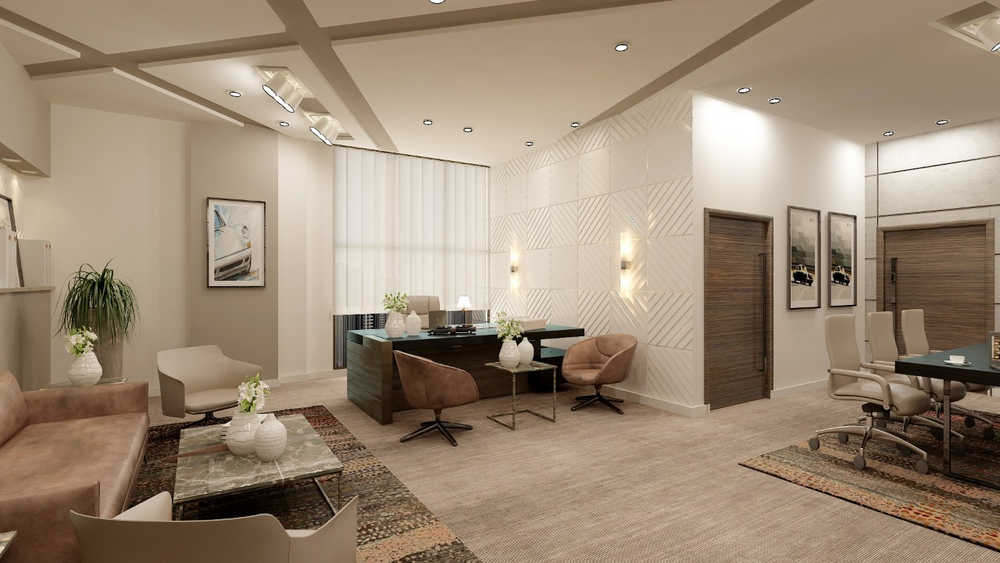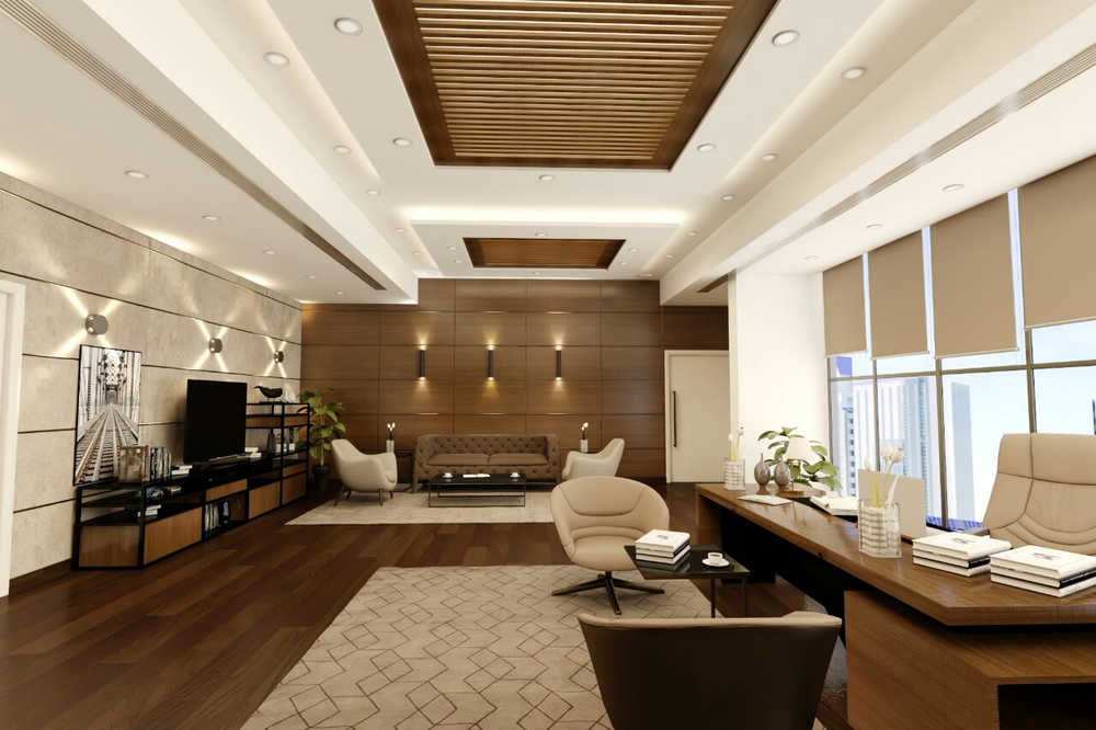 كما يبرز التصميم بتوزيع متوازن للإضاءة والعناصر الجمالية التي تعزز من بيئة العمل وتمنح إحساسًا بالفخامة دون مبالغة.