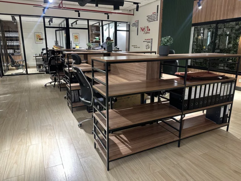خلايا عمل مصممة خصيصًا: تحتوي على مساحات تخزينية كبيرة لكل موظف، مما يضمن التنظيم والكفاءة في بيئة العمل.