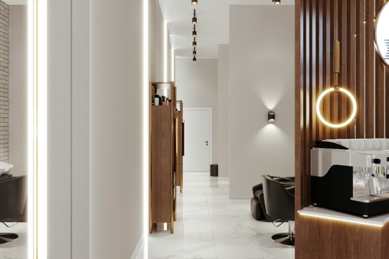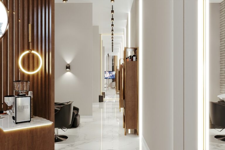 تصميم داخلي لصالون حلاقة بيوتي بالرياض