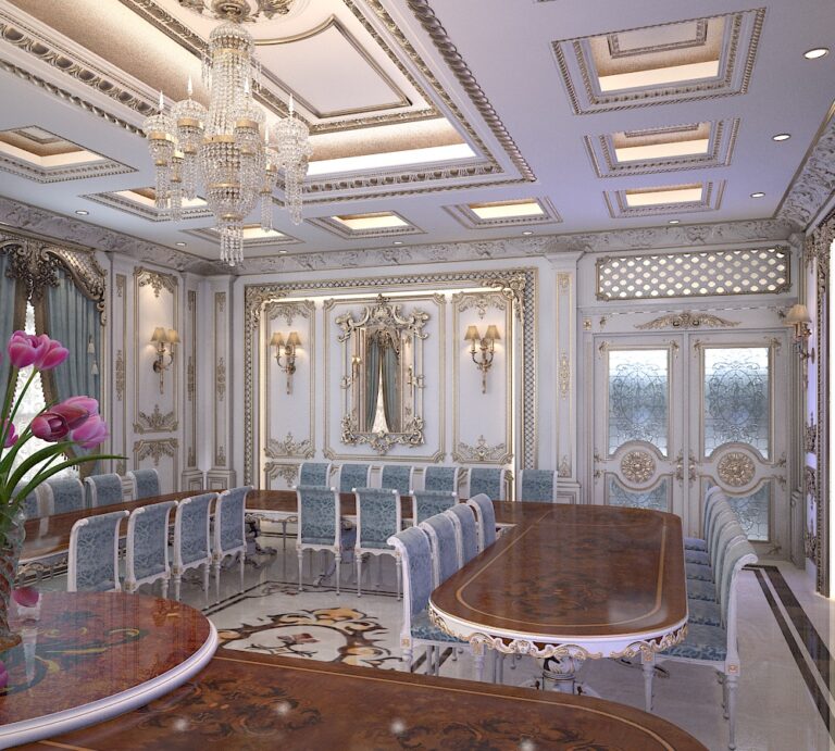 قدّمت شركة Vera Interior تحفة معمارية بتصميم داخلي فاخر لإحدى الفلل السكنية في الرياض، مستوحاة من الطراز الكلاسيكي الملكي، الذي يجمع بين الرقي والفخامة الخالدة.