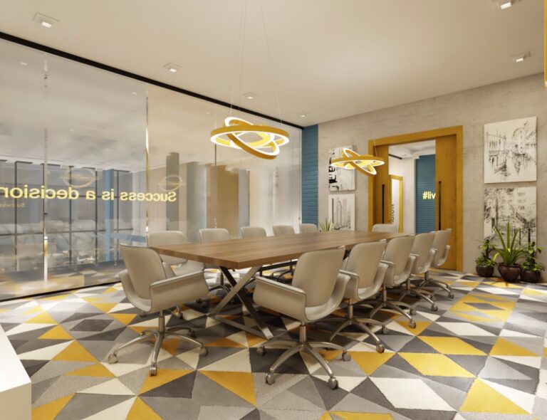 شمل المشروع تصميم مكاتب مفتوحة وأخرى مغلقة، لتلبية احتياجات العمل المختلفة. حيث تم تخصيص مناطق للتعاون الجماعي، وغرف اجتماعات مجهزة بالكامل، بالإضافة إلى زوايا للاسترخاء وتبادل الأفكار. كل هذه المساحات تم تصميمها وتنفيذها بدقة، لتعكس معايير شركة تصميم داخلي Vera Interior ذات الجودة العالية.
