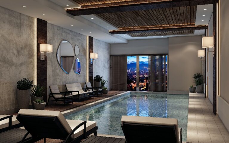 اللافت في المشروع هو تصميم المسابح الداخلية، التي تعكس أجواء المنتجعات من خلال استخدام الخشب الطبيعي والرخام والإضاءة الهادئة. باختصار، هذا المشروع يجسد مفهوم الحياة المترفة بأسلوب عصري أنيق يناسب الذوق السعودي الحديث.