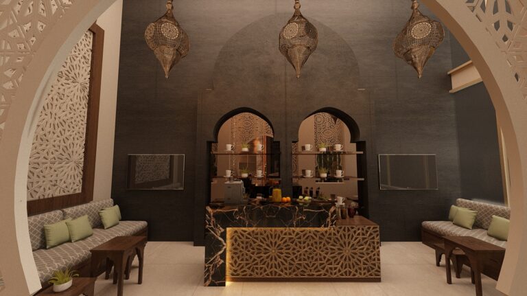 ولا يمكن تجاهل دور الإضاءة، حيث لعبت الإضاءة الدور الرئيسي، فكانت جمالية، خافتة، زخرفية، وظيفية، وغير كاشفة للخصوصية، مما يعطي انطباعًا راقيًا وهادئًا ومريحًا للنفس، لتخلق جوًا من الهدوء والسكينة. السحر والرومانسية.