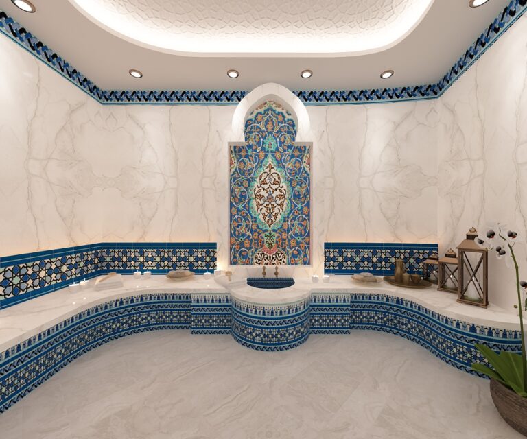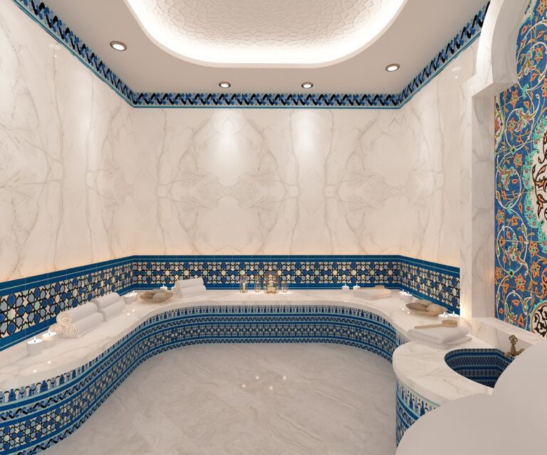 كما حرصت شركة فيرا على تقديم تصميمات عصرية لا تخلو من اللمسات التراثية الأندلسية بألوانها الزرقاء وحبيبات الفسيفساء الدقيقة.
