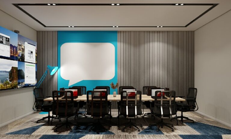 - Modern Meeting Rooms: Equipped with display screens, comfortable chairs, and focused lighting to ensure an interactive and efficient environment.