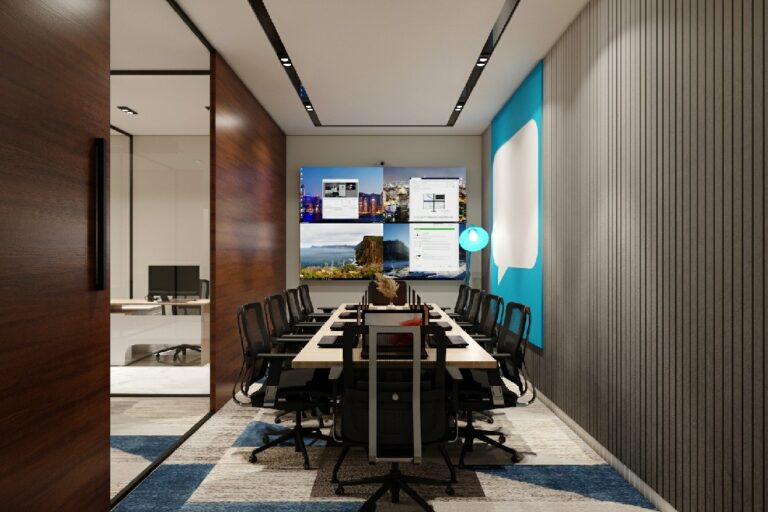 - Corporate Identity: The company’s branding was emphasized through the strategic placement of the logo in reception areas and meeting rooms, integrated elegantly with the overall design.