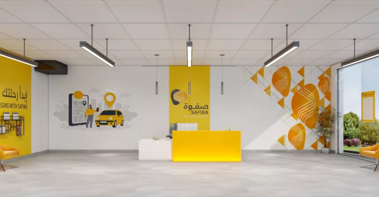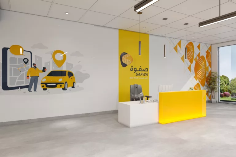 In 2021, Vera created an innovative design for the Al Safwa Car Rental Center, covering 150 square meters. The design introduced a fresh concept that combines simplicity, cost-efficiency, and a clear representation of the brand’s identity in a direct and impactful way.