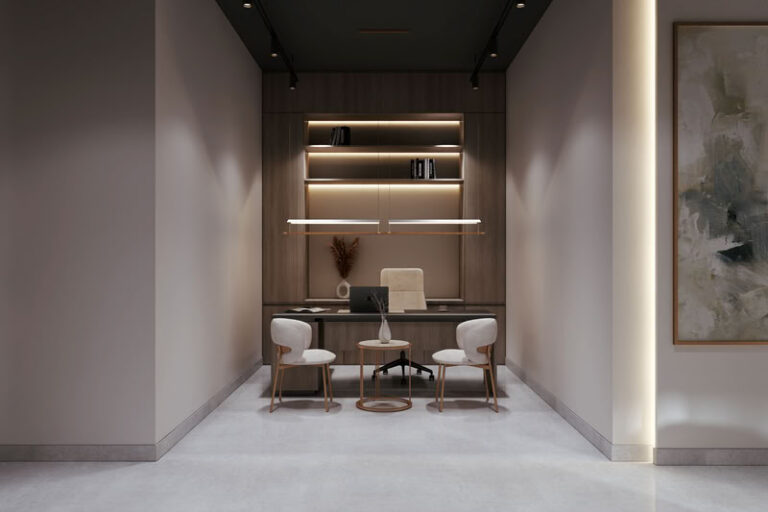 Soft lighting and simple decorative elements highlight the design details without making the space feel crowded. This project demonstrates Vera Interior’s professionalism in delivering modern interior design solutions for offices, combining elegance, clarity, and comfort to create a workspace that suits contemporary business environments in Riyadh.