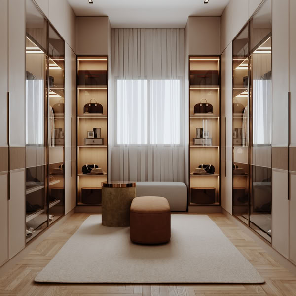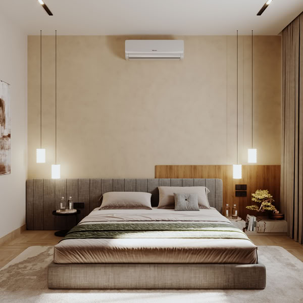 The rooms are arranged in a clear and organized way, allowing each area to feel open and comfortable for everyday living. Furniture pieces are selected with a simple and elegant look that matches the overall modern concept. Soft lighting also plays an important role in highlighting the interior details and enhancing the relaxing mood of the spaces.