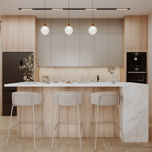 The Modern Interior Design for a Residential Villa project is a modern residential interior design created by Vera Interior. The design focuses on simplicity, comfort, and balanced spaces, reflecting the clean and elegant style of modern interiors. Neutral colors and warm wood tones appear throughout the spaces, creating a calm and welcoming atmosphere.