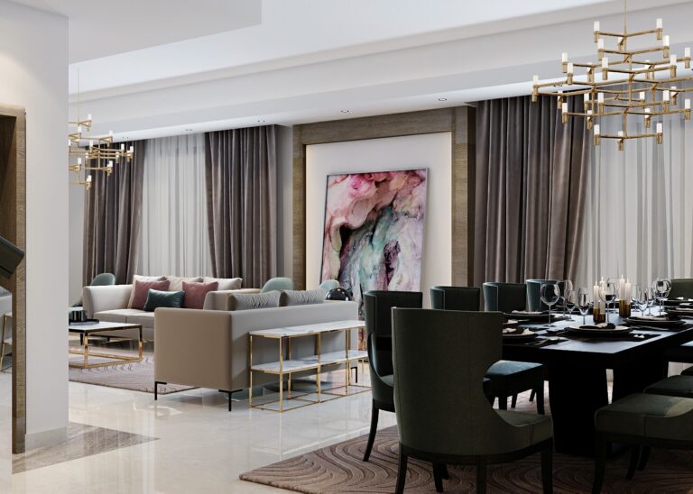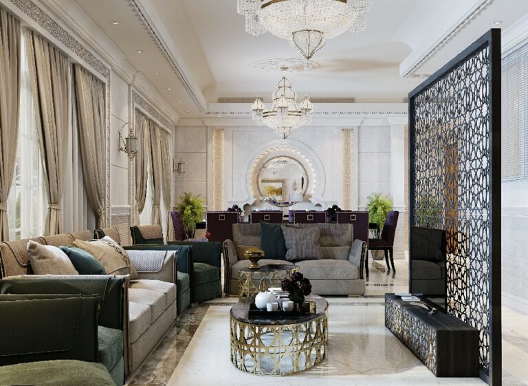 This design embodies quiet luxury—where classical elements meet contemporary finesse—setting a new benchmark in neoclassical interior design in Saudi Arabia.