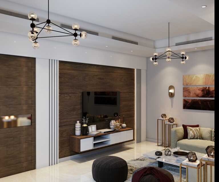 Highlights include a grand reception hall with regal accents, cozy yet stylish living rooms, a contemporary dining area with golden chandeliers, and luxurious bedrooms that reflect calm sophistication. Materials such as marble, brass, soft textiles, and rich wood tones were used to create visual harmony and texture.