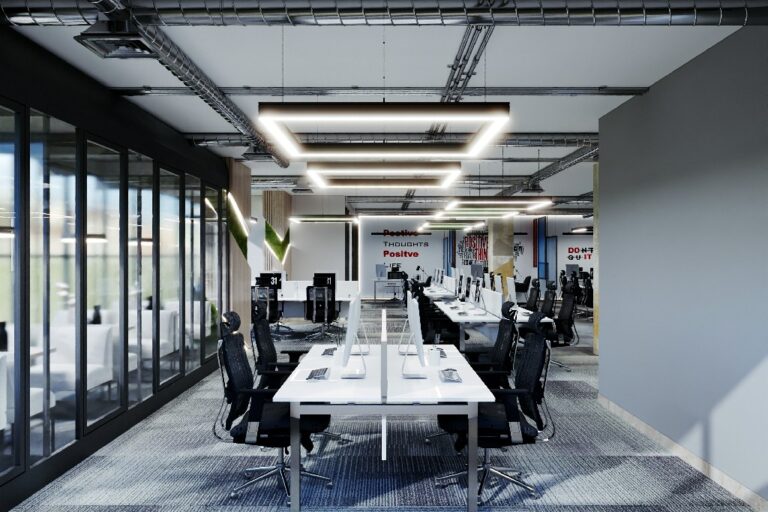 - Open-plan office design furnished with modern office furniture to ensure smooth movement and collaboration between teams.