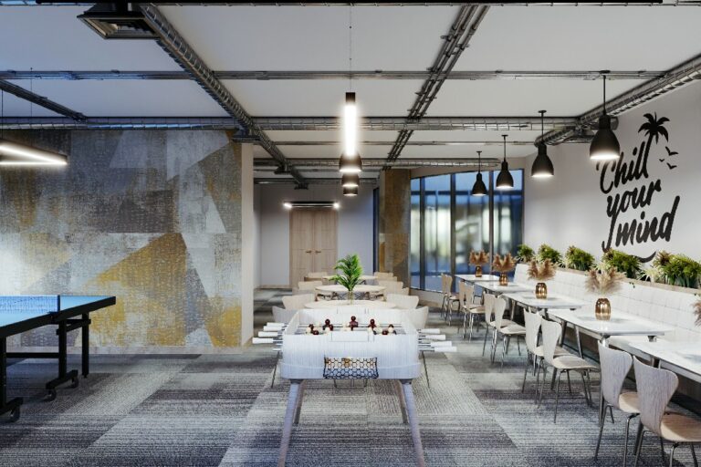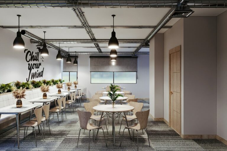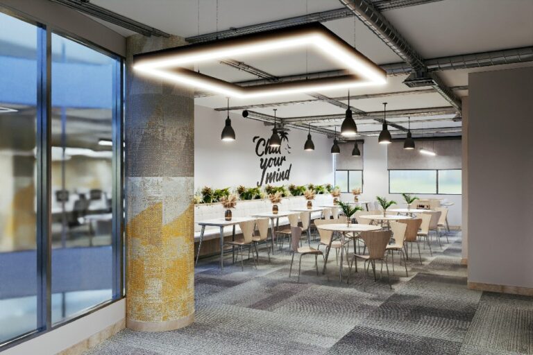 - Comfortable lounge areas and an internal café with cozy decor and green touches that boost employee well-being.